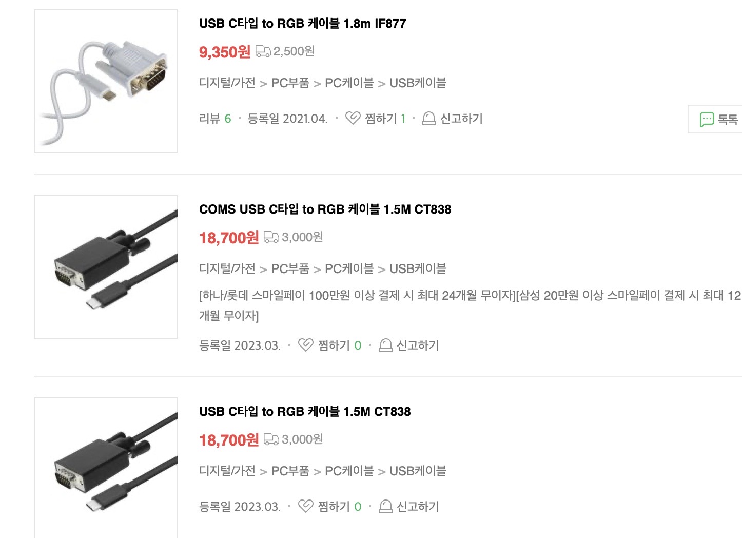 그러던 어느날. 문득 이런 생각이 들었다. RGB와 C포트를 연결할 수 있는 케이블이 있지 않을까? 그리고 검색을 해봤다.