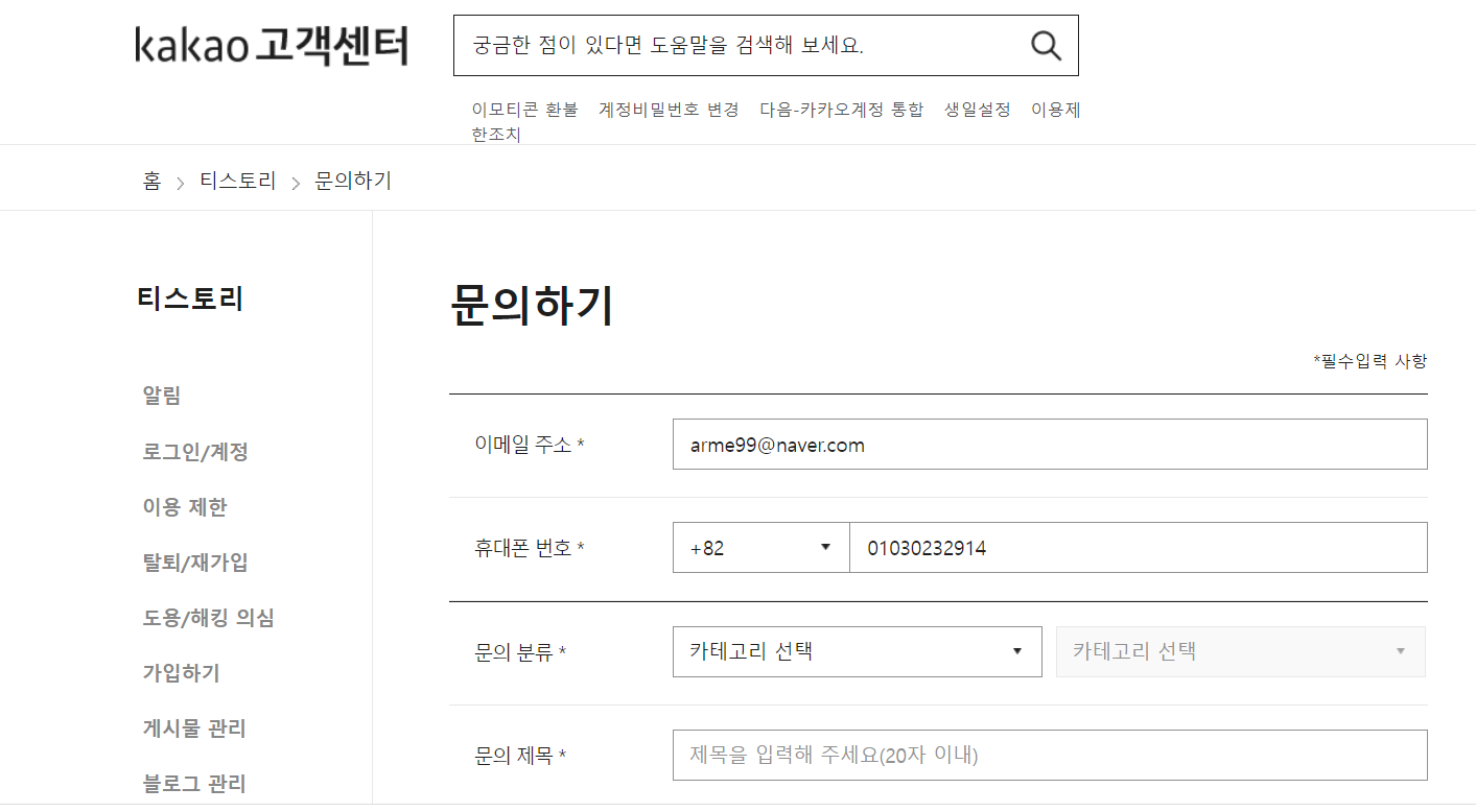 또는 카카오 고객센터에 접속했을 때. 내가 남긴 글 목록이라도 볼 수 있게 만들어 놔야 하는 것 아닌가? 정말 국내 IT 기업들 답답하다. 이렇게 주먹구구식으로 경영하는데, 주가는 왜 이렇게 높은거야?