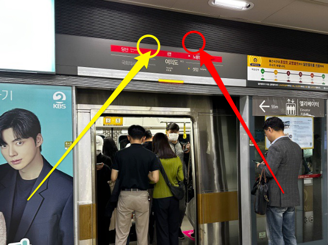 이런 문제를 해결하는 것은 그리 어렵지 않다. 아주 간단히 해결할 수 있다. 스크린 도어 위에 지금 도착해 있는 열차가 급행열차인지 완행열차인지 표시만 해주면 된다.