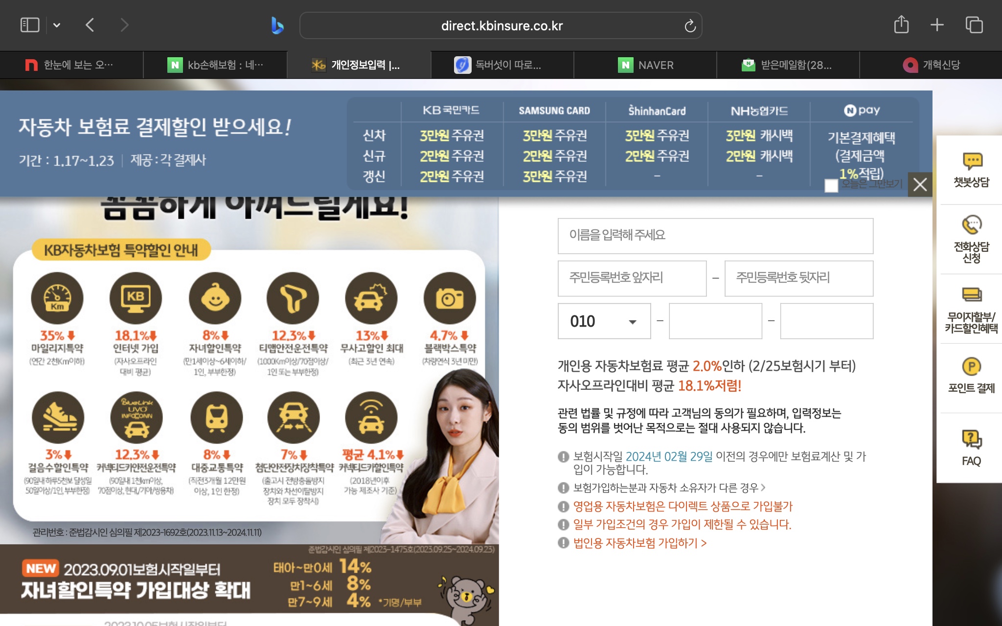 바로 PC를 열어서...구글에서 검색하면 또 엉뚱한 홈페이지가 검색될 수 있으니, 시키는 대로 네이버에서 kb손해보험을 검색했다. 그리고 접속했다.