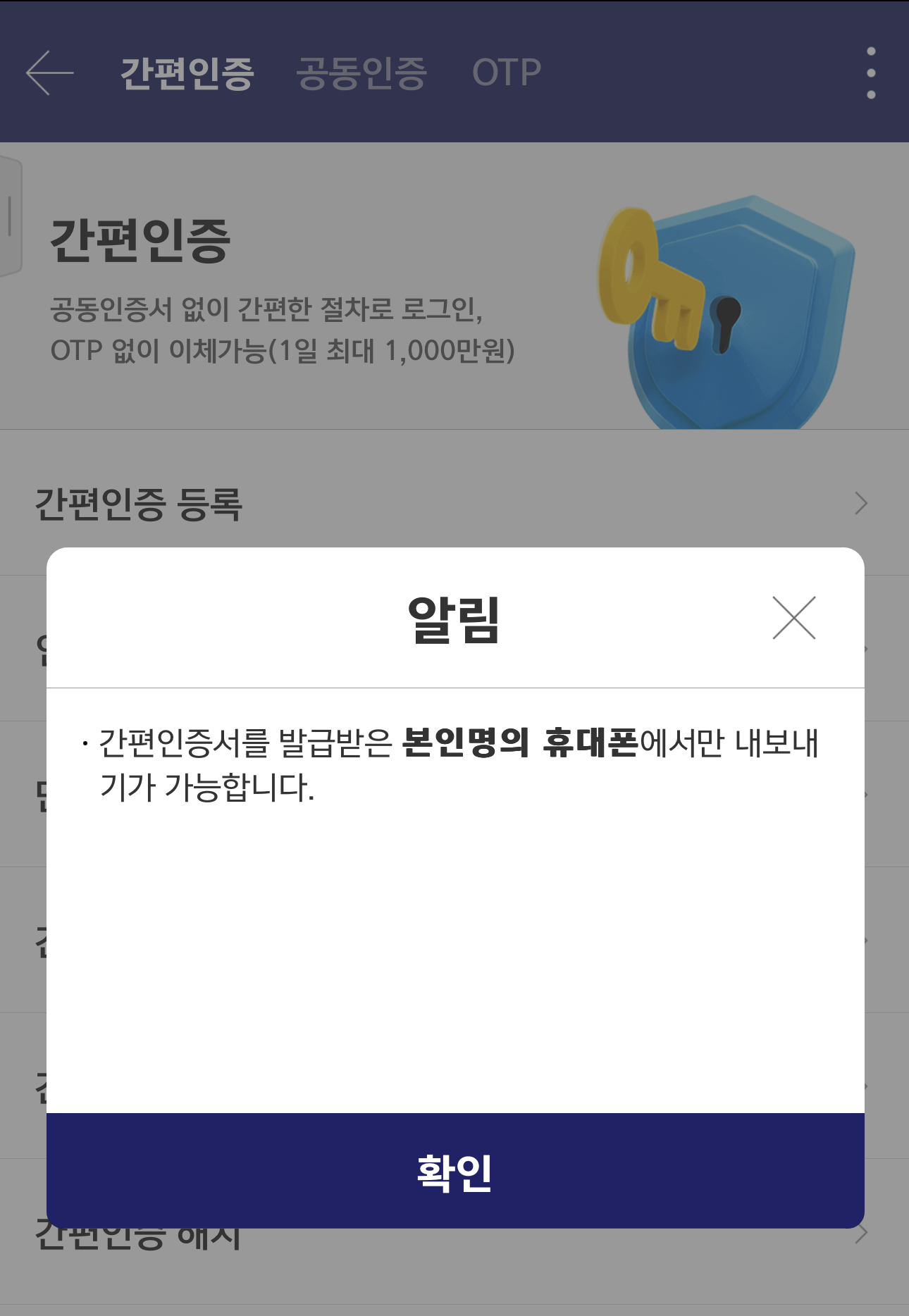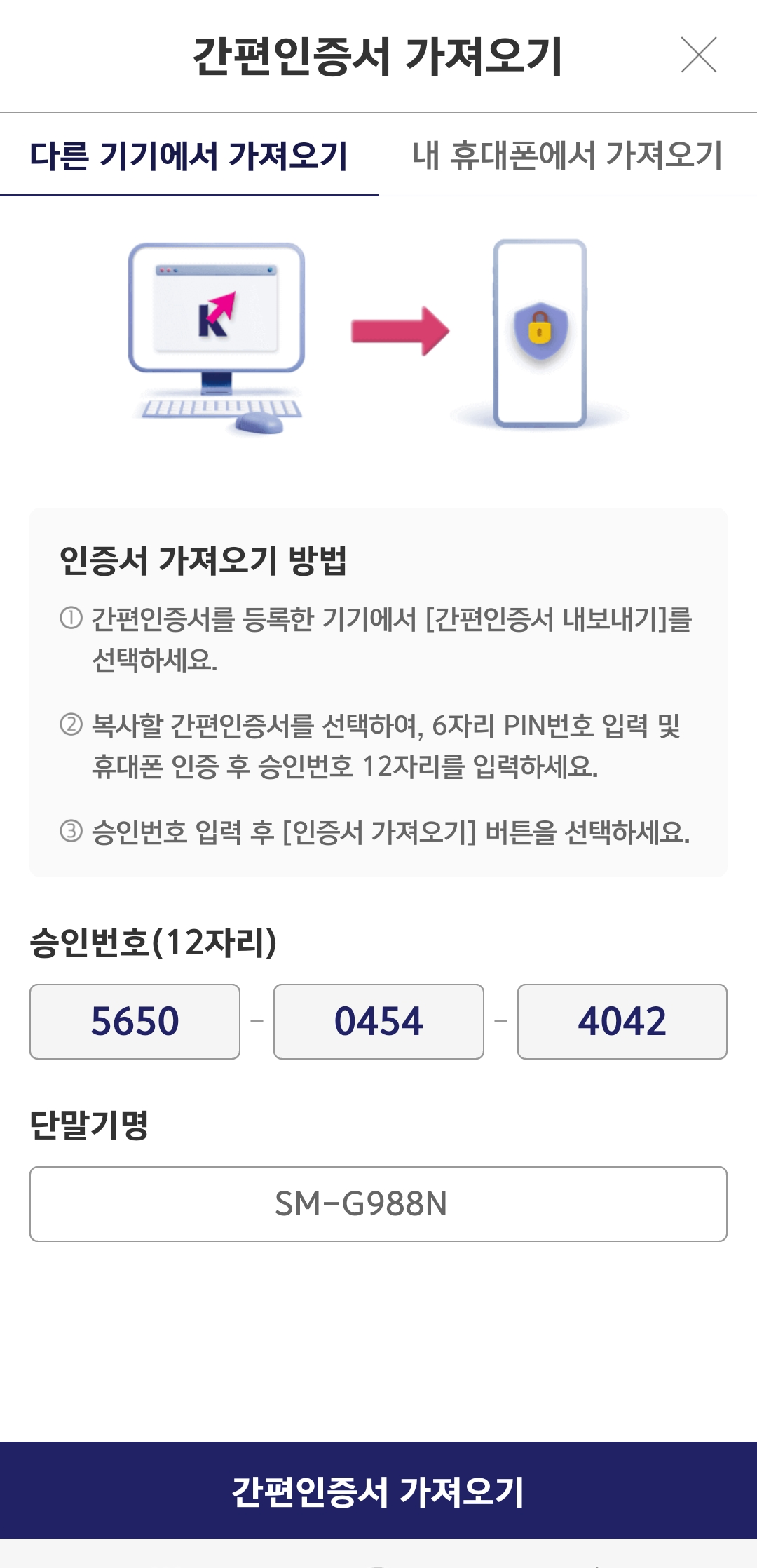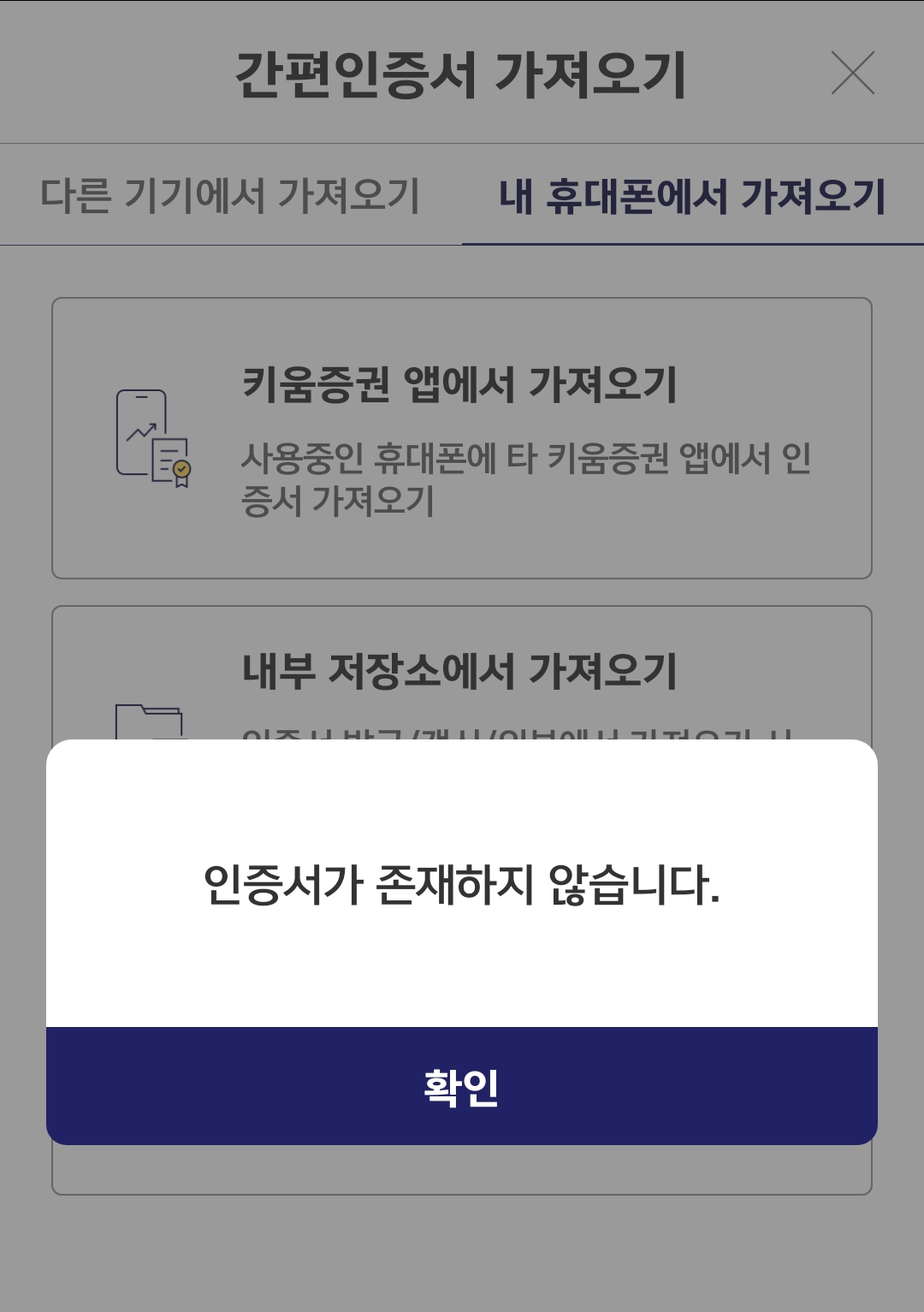 갤럭시에서도 로그인을 시도했다. 그런데 로그인을 하려면, 아이폰에 저장돼 있는 <인증서>를 가져와야 한단다.