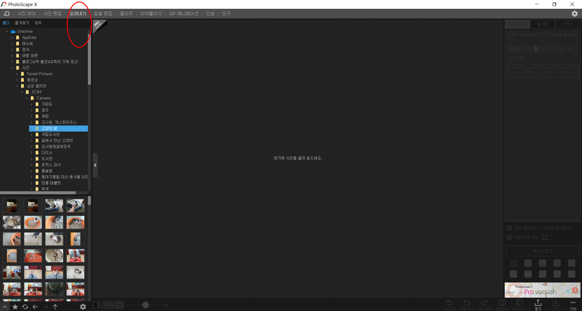 사진에서 빨간 동그라미를 그려넣은 부분을 클릭한다. 그러면 왼쪽 하단에...사진 목록이 나온다.