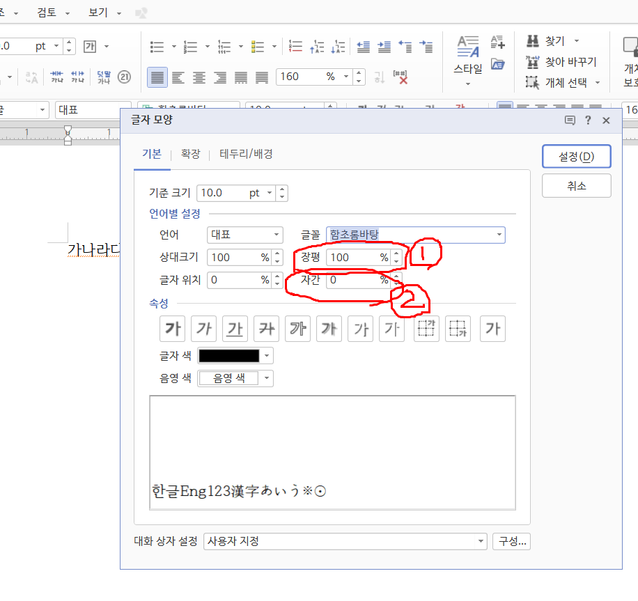 한글 장평 손쉽게 이해하기