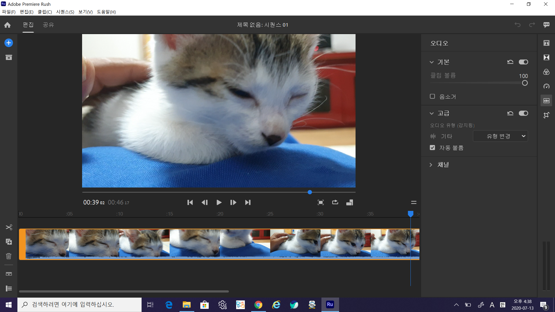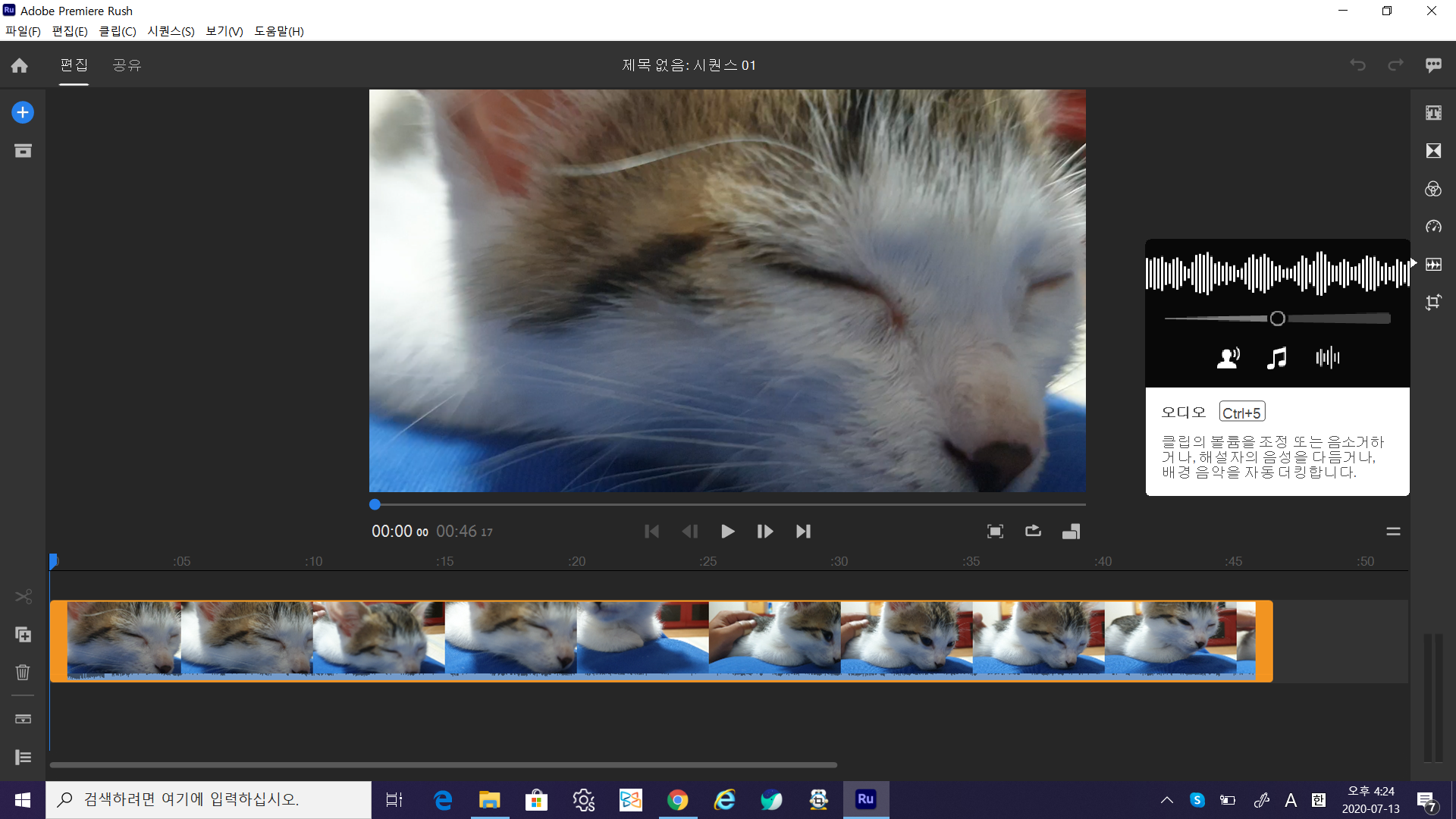이럴 때 프리미어 러시를 이용하면 작은 소리를 키울 수 있다.