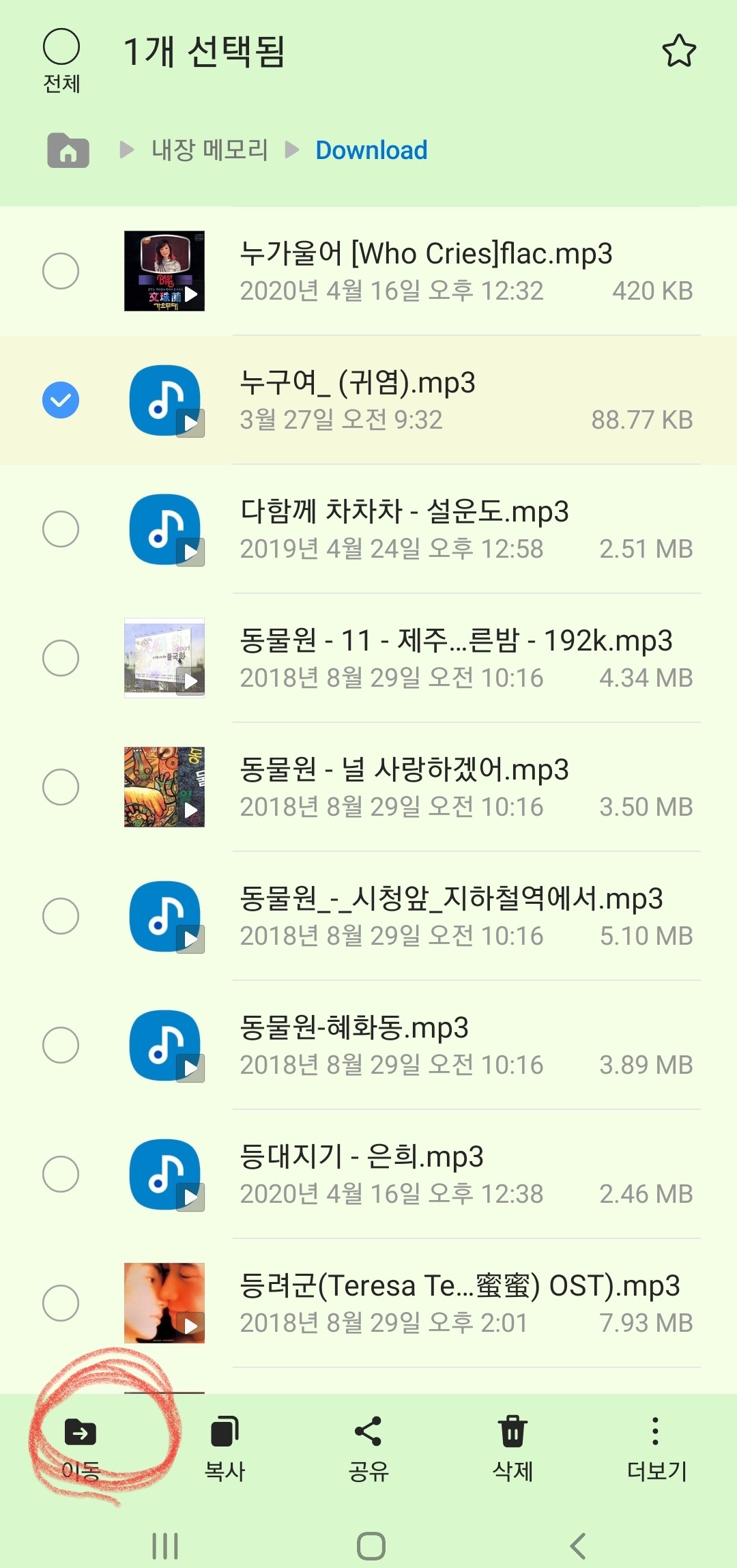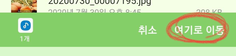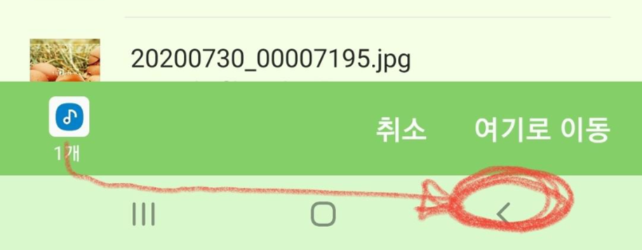 - 아래 그림에 빨갛게 동그라미 그려 넣은 곳을 터치하면. 파일 이동이 된다