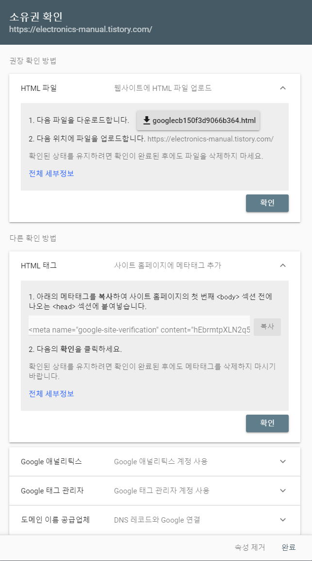 4. 다시 구글 콘솔 소유권 확인 창으로 되돌아 간다.