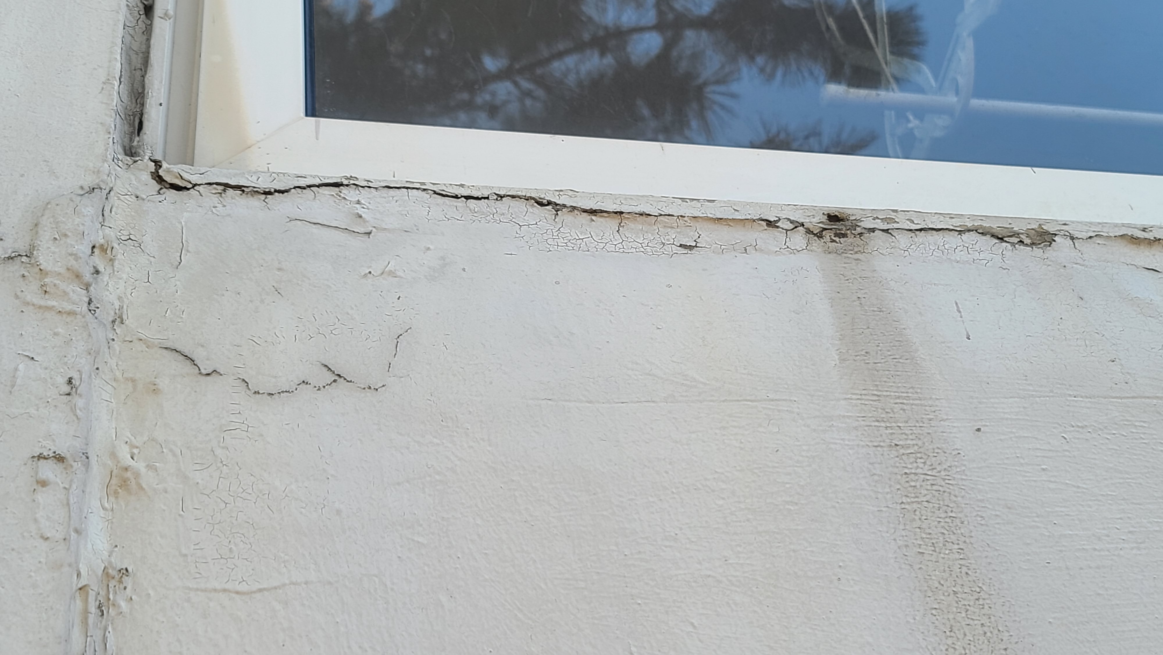 위의 사진은...오래된 건물에 물이 새자. 실리콘으로 방수를 한 것인데. 오랜 시간이 지나지 않아서 실리콘이 갈라져 있는 모습을 볼 수 있습니다.