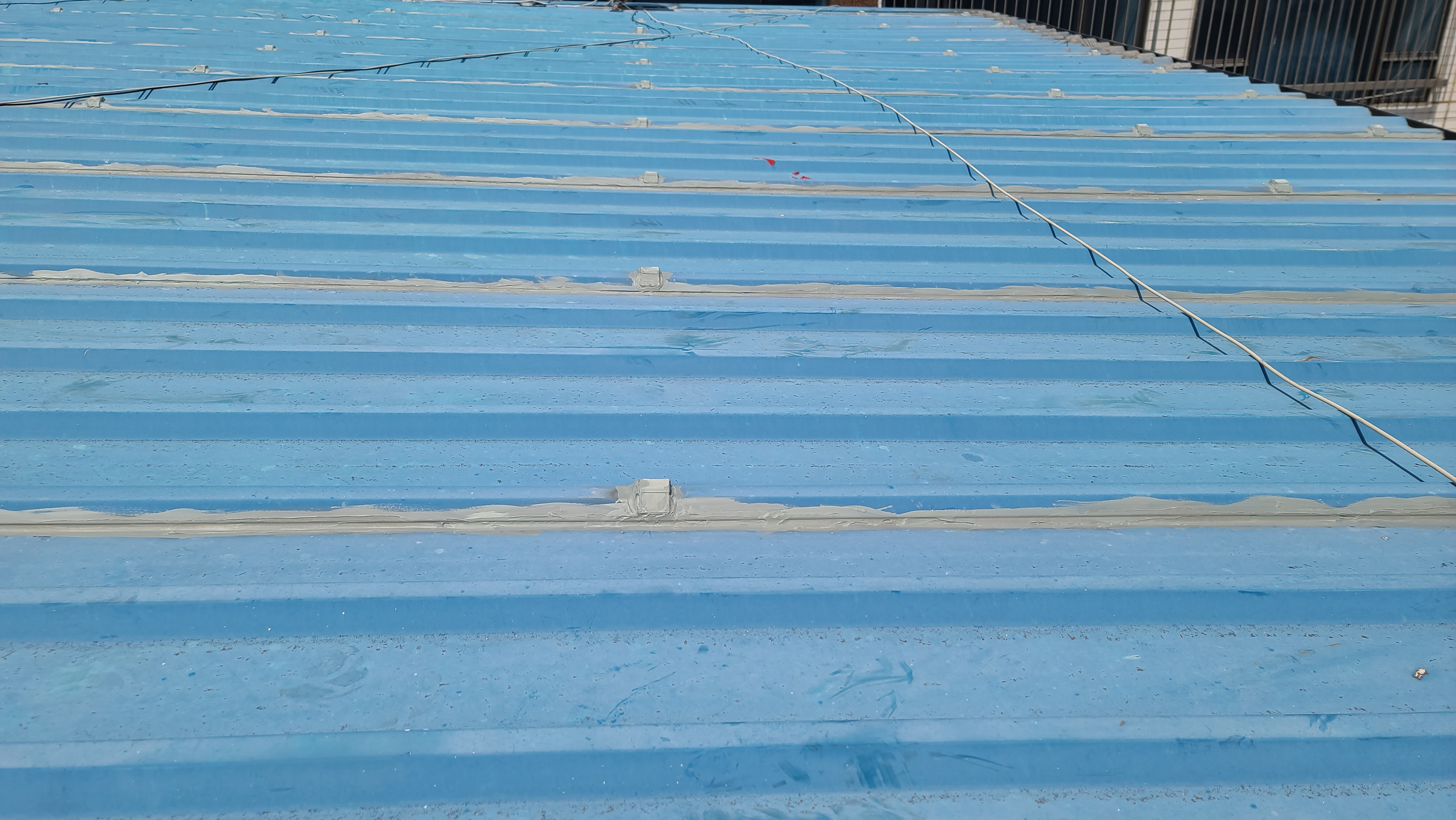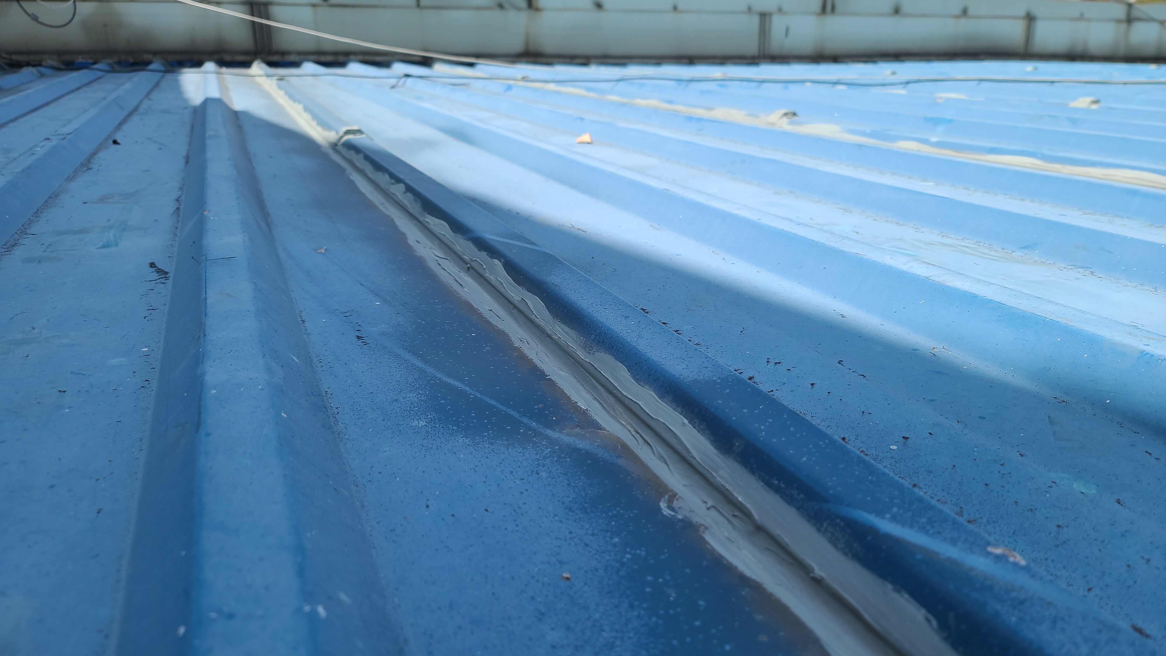 샌드위치 판넬 지붕에 올라가봤더니. 상태가 생각보다 심각합니다. 지붕 이음새에 물이 새지 않도록 실리콘 마감을 해놨는데.