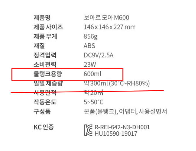 그런데 실제 성능은 하루 150ml정도밖에 안되는 것이다. 제조사 혹은 판매사의 설명보다 성능이 절반 이하인 것.