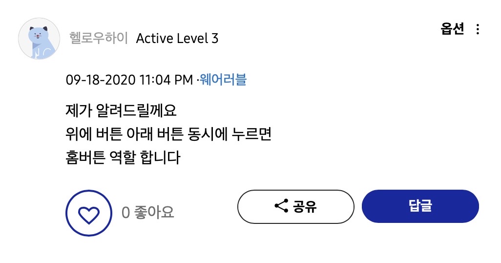 아주 손쉽게 문제가 해결됐다. 폭풍 검색을 하다보니, 갤럭시기어s3에 있는 버튼 2개를 동시에 누르면. 이 문제가 해결된다는 웹문서를 발견한 것이다.