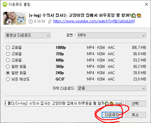 처음에는 유튜브 영상 재생을 중지시켜놓고 캡처를 했는데, 이게 화질이 영 엉망이다. 방법을 찾다가 영상 다운로드 방법으로 해결했다.